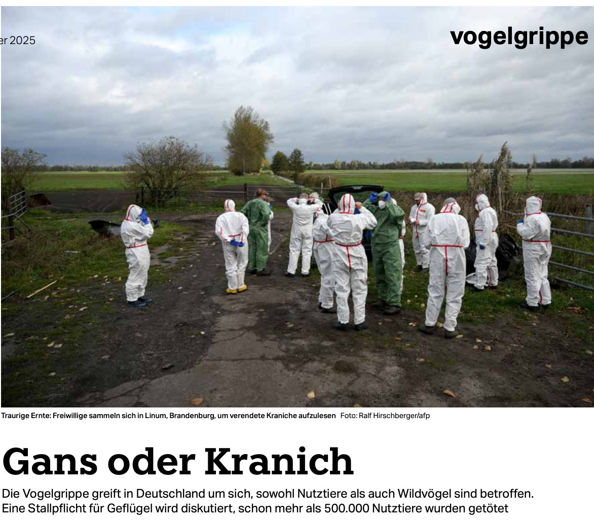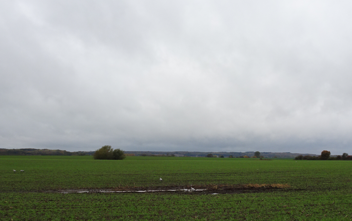 Auf den Feldern noch Kraniche wie vergessen von der Seuche einsam und getreu.