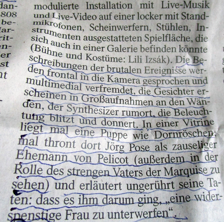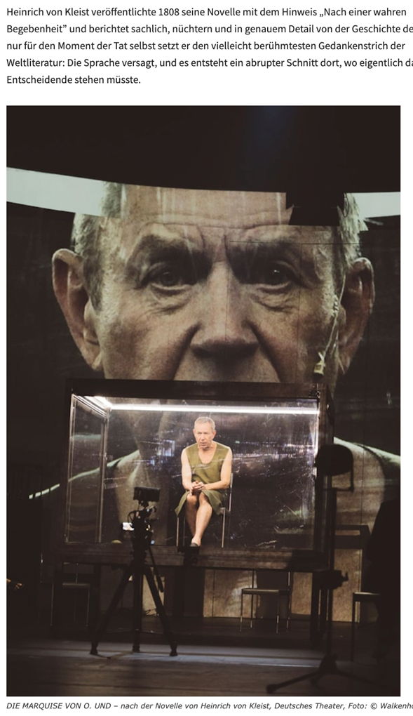 Was dann gerichtet wird, was hier geschieht, ist ausserhalb dessen, was Theater ist oder Kleist und deshalb eher für den Bundesrechnungshof eine Vorlage zur Frage, wofür die Gelder verwendet werden, die sowas kostet.
