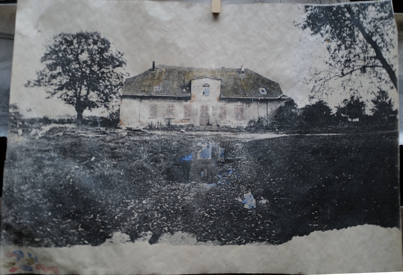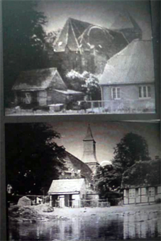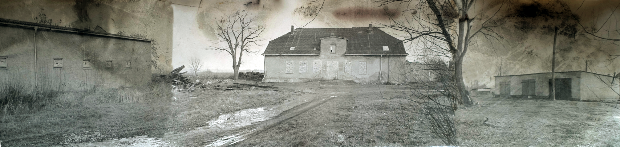 3 Fotos aneinander montiert damals. Links der Reste der Zur LPG - Halle gewordenen Scheune ursprünglich