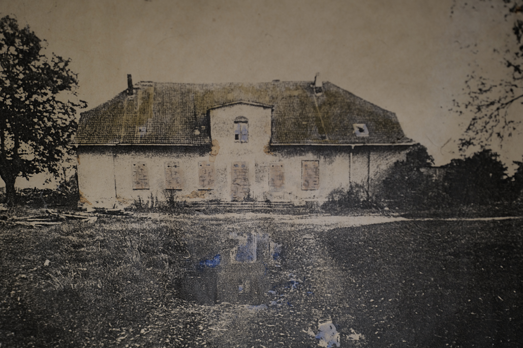 gegenüber. Zweimal so hoch was Gutshaus in der Mitte.