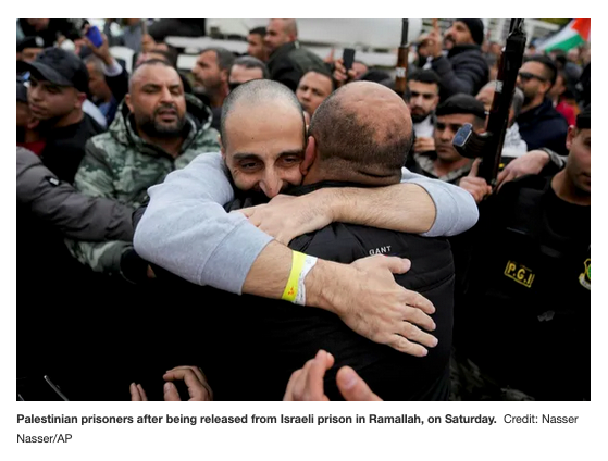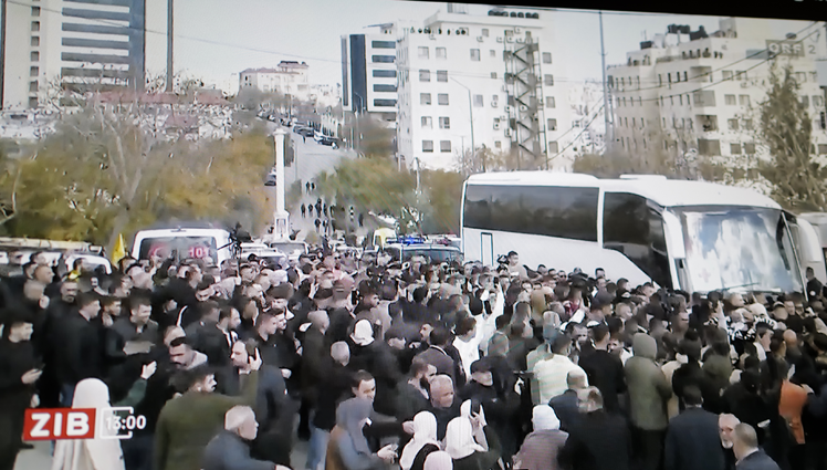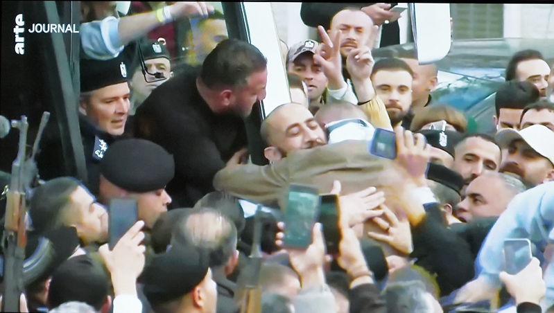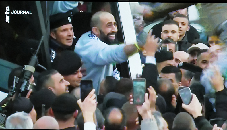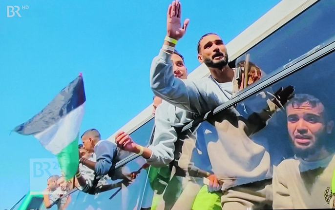 wovon hier an diesem Tag niemand sprach an keinemTisch, nicht im Sitzen nicht im Stehen und doch immer da. 3 zu 90 Geiseln-Gefangenen. Geben-Nehmen. Austausch. Der Hochmut ist teuer. 484 Tage gegen 20, 30 Jahre.