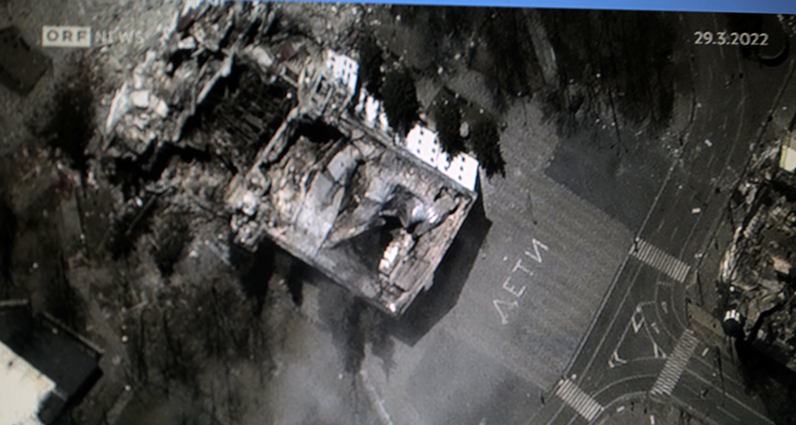 Mariupol das Theater vor 4 Jahren zerstört mit vielen Toten