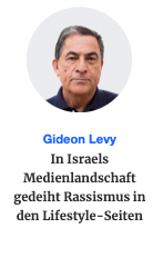 Ziemlich bald werden wir weit kommen. Man braucht das faschistische Recht nicht, um die Saat des Rassismus zu säen. Man braucht keinen Kanal 14, um Palästinenser zu entmenschlichen und zu dämonisieren. Es ist alles hier im Zentrum, im Zentrum Israels. Auf den Freizeit- und Funpages einer Zeitung.