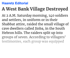 Ihr Eindruck ist ein beunruhigendes und faszinierendes Dokument. Man muss es lesen, um zu verstehen, was passiert, wenn das israelische Zentrum, das in seinen eigenen Augen selbstzufrieden und erleuchtet ist, auf einen Safari-ähnlichen Besuch in einem Zoo namens palästinensisches Dorf kommt.