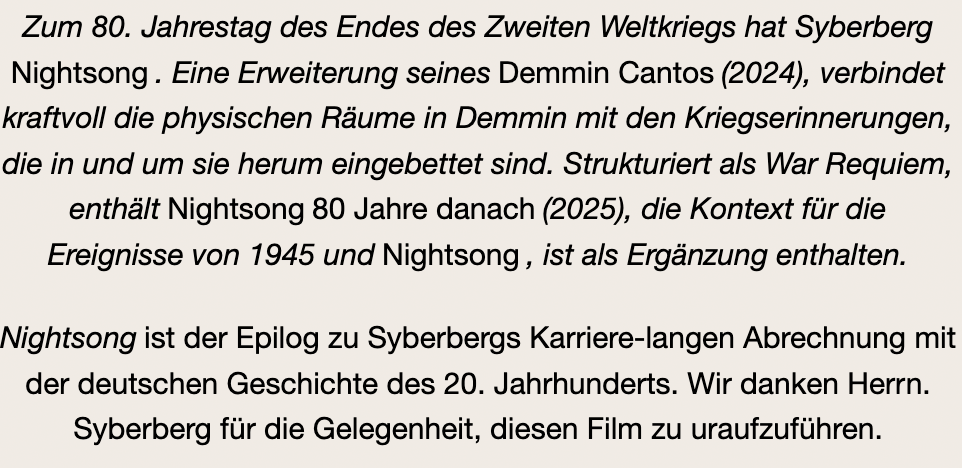 Dieses Bild für die erste Präsentation des Films NachtGesang ist