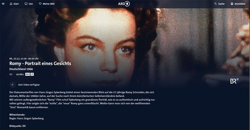 heute Nacht -um Mitternacht- dieser Film Romy Porträt eines Gesichts von 1966, mehr dazu auf Seite 2 bei uns