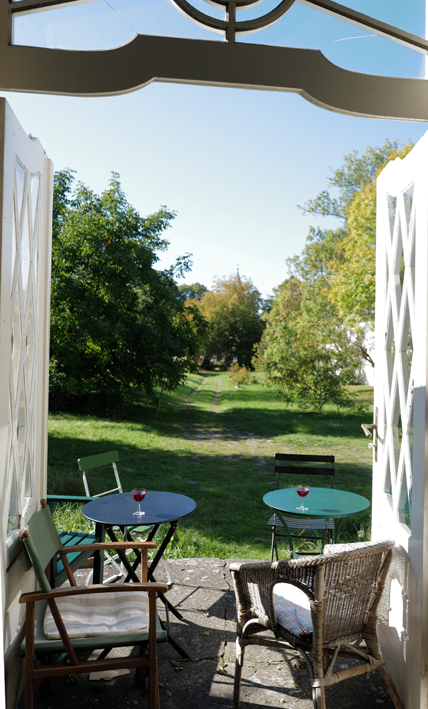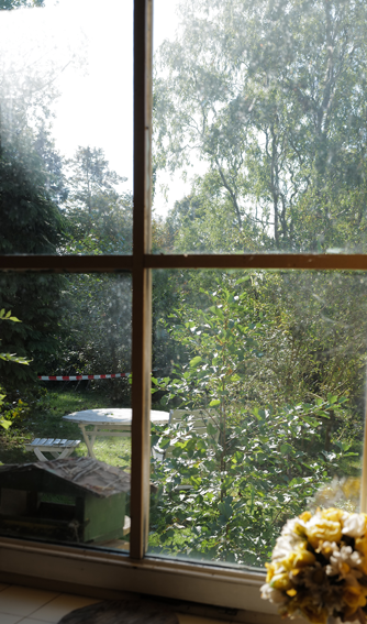 Und im Garten den Tisch schützend gepfanzte Weiden nutzend.