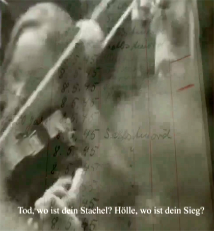 "reine Musik! Das Gegenteil geschieht zugleich. Und genau so etwas vollzieht sich in der Verbindung von Demmin und Moskau. Etwas scheinbar Unmögliches wird realisiert. Damit bin ich beschäftigt udn darüber denke ich noch nach. Besteht das Wesen der Versöhnung tatsächlich so sehr in der Verbindung, in der Überdeckung der Gegensätze?" (A.K.)