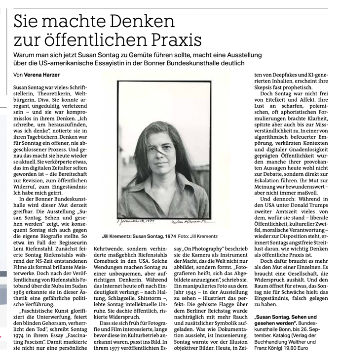 nun auch in der taz und nun in Bonn Susan Sontag der Medienstar wieder ohne Kontrolle wenn es um Denken geht und Deutschland