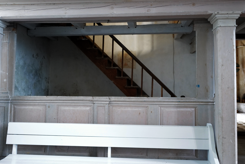 dann da auf der anderen Seite früher Fenster und alles blau wir der Altar