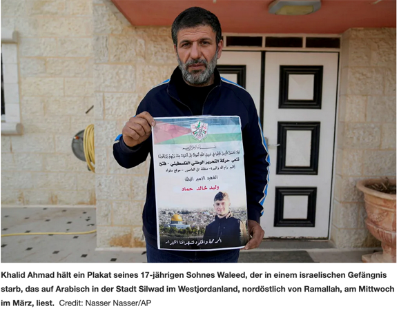 Im Körper des 17-jährigen Walid Ahmed wurden Darmentzündungen und Krätze gefunden, und es gab fast kein Fett oder Muskelgewebe mehr. Er wurde wegen eines Molotow-Cocktails und Steinen, die er geworfen hatte, verhungert, genau wie die, die von Siedlern in Kafr Malek geworfen wurden. Der israelische Gefängnisdienst hat ihn ohne Gerichtsverfahren hingerichtet.