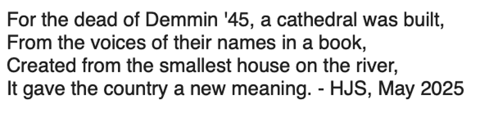 Das hiess ein alternatives Totenbuch zu 1945 selbst machen die Bilder des Brennenden Demmin am Ursprungsort zusmmen mit den Namen der Toten aus der Penne