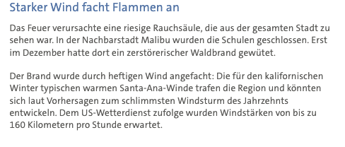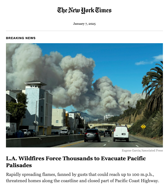 Den Einsatz beschrieb Crowley als „extrem schwierig“. Auf einigen Straßen von Pacific Palisades, einem wohlhabenden, an der Pazifikküste gelegenen Stadtteil von Los Angeles, spielten sich chaotische Szenen ab. Der Verkehr kam zum Erliegen, Autos steckten im Stau fest. Einige ließen ihre Fahrzeuge zurück und brachten sich zu Fuß in Sicherheit. Mit Bulldozern habe die Feuerwehr abgestellte Autos aus dem Weg räumen müssen, um mit ihren Löschwagen weiterzukommen, berichtete der Sender KTLA.