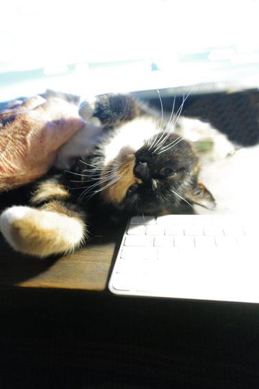 Nach Mitternacht. Die Katze schnurrend sich kleinmachend auf dem Tisch neben dem Computer, Mozart des Nachtkonzerts, nun erstmal Pause des Schlafs. Denke dass ihr der Mozart lieb ist.