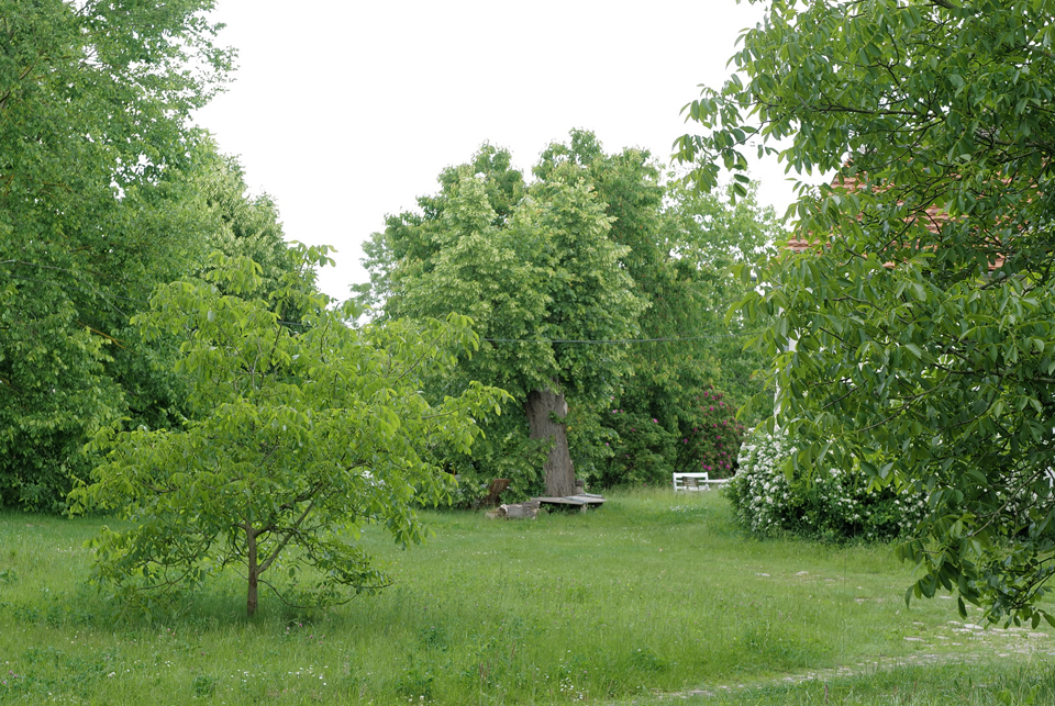 O. hat die Terrasse hinten zum Park gerettet. Fallrohr vom Dach in die Mauerecke geleitet, dass alles zusammenbrach, Mauer und Haus. Zum Abriss bereitet. Nur er, gegen Anordnung, wagte die Erneuerung. Abriss brachte viel Geld, Aktion nach 1990 Schandfleck(Gutshäuser/Ställe/Scheunen) beseitigung.