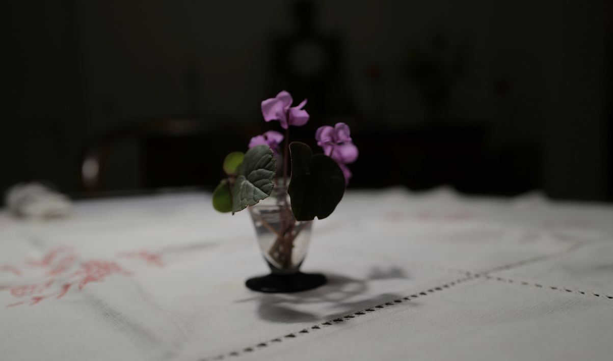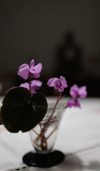 Jetzt sind sie wieder da als erste immer, ausgewildert aus einer Topfpflanze, Zyklamen klein nun draussen nach dem Frost und Schnee.