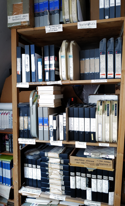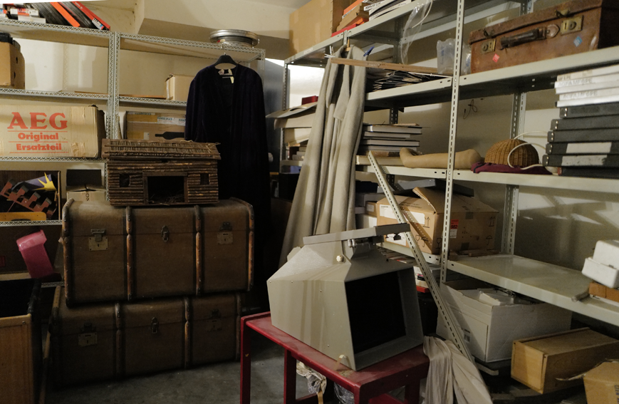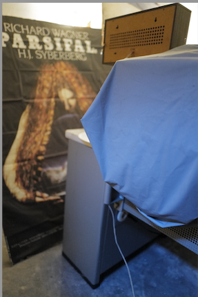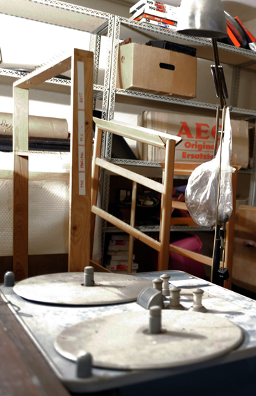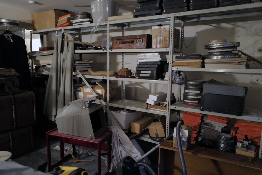 Schneidetisch aller Filme hier auf Zelluloid im ehem.Schneideraum dazu, Keller des Hauses.