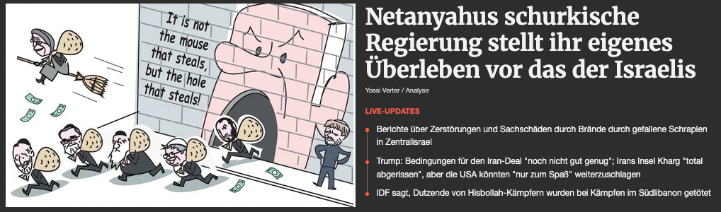 Der irsraelische Netanjahu als Verantwortlicher der aktuellen Kriege und Toten vor Gericht wegen Korruption, Untreue .... vom Internt. Ger. Hof zur Verhaltung ausgeschrieben, von dem amerik.Präsidenten zum Helden ernannt und befreit von allen Vorwürfen genadigen ohne Schuldspruch der Geschichte ...