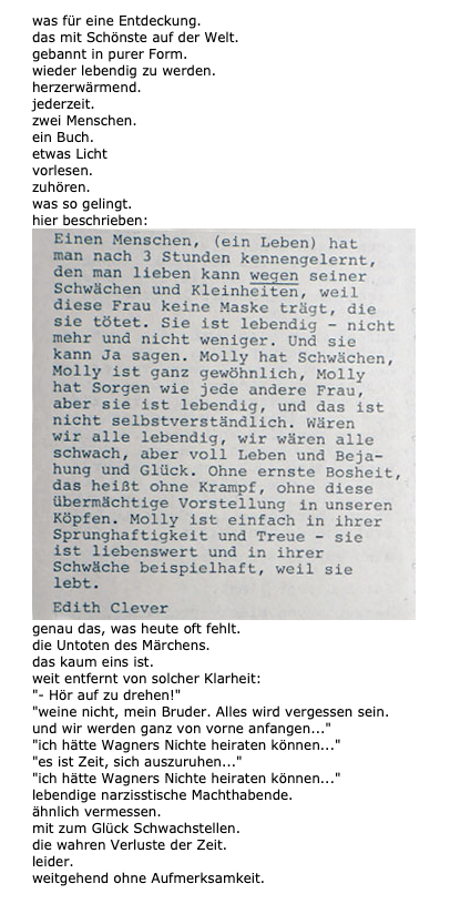 Ohne Punkt und Komma, wie der Text so die Bilder in einem durch aufgenommen.