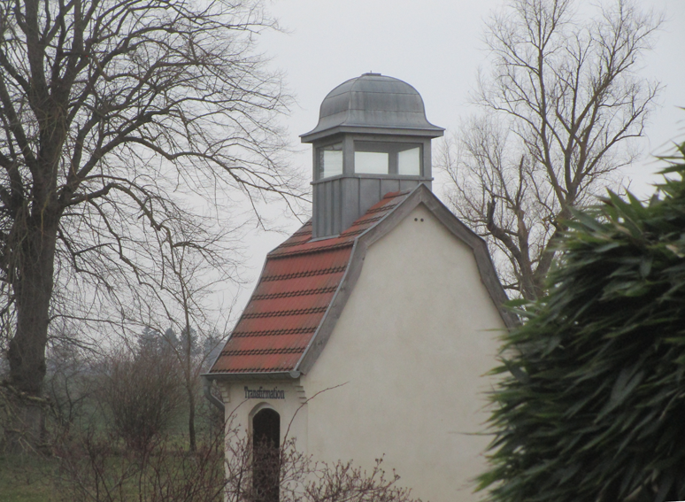 Wiederhergestelltes Tansformatenhaus wie alles hier aus Ställen und Speichern zum Gutshaus neu mit Park wurde, offen an diesem Tag rundum.