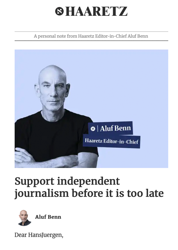 At Haaretz, we try to do what a free press is supposed to do: report what the government prefers to obscure, follow the money and the ideology behind policy, examine the uses of war at home as well as abroad, and provide the full picture to readers – not only military developments, but the condition of democracy, the fate of civilians, the reality in the West Bank and Gaza, the pressure on free expression, and the steady corrosion of public norms.