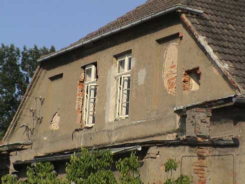 Beton und Asbest. Wo damals Stroh/Schilfdach war und das Nest der Störche.