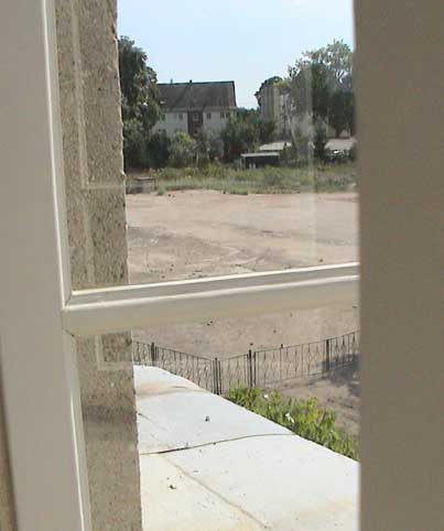 das Storchen-Fenster schon restauriert aus Paris zurück,mit zweitem daneben in Arbeit. Im Elend seiner Umgegegend. Und doch was alles, wenn das nicht. Ertragen, machen, sonst?
