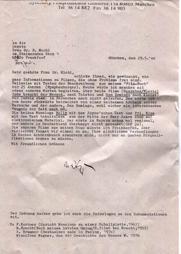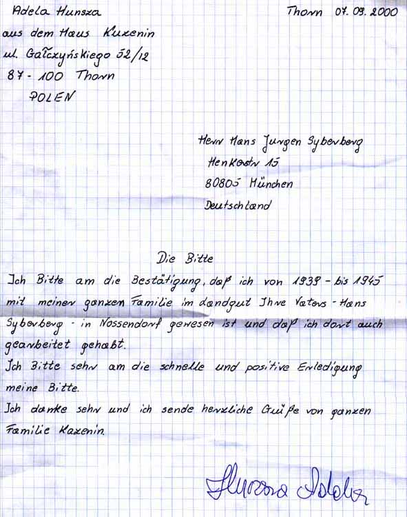 Bürgermeisterin von N. und Mutter des J.W. (s.o.) ohne Antwort - Landrat B. in Demmin (s.o. und Übersendung des Exposés) mit Bitte um Denkmalschutz: