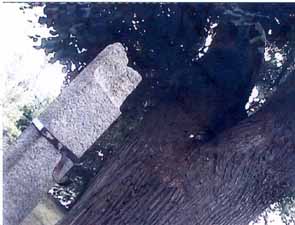 Schmied Ploog aus Eichenblättern gemacht. Auf den Steinen im Kreis die Namen der Toten. |