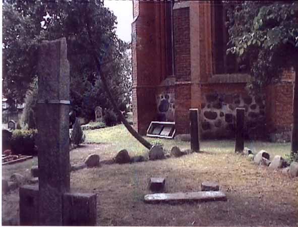 Auf dem Friedhof in N. Kirche seit 750 Jahren, auf allen Karten seit 250 Jahren, über den der Schulweg ging. Hier das Denken für die Toten aus dem Dorf. 45 der eiserne Kranz entfernt, vom