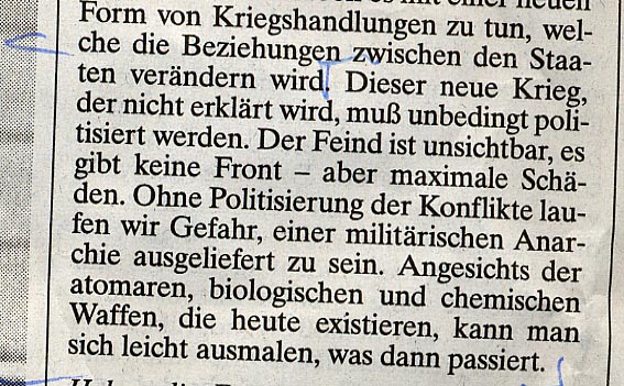 acknowledgment that this was not a "cowardly" attack on "civilization" or "liberty" or "humanity" or "the free world" but an attack on the world's