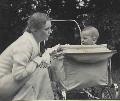 der 5oer Jahre, die Mutter mit dem Sohn nebeneinander sitzen werden, iat es