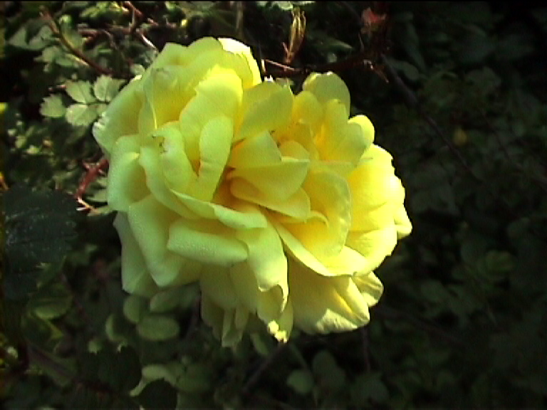 Der erste Gang am Morgen auf das Dach des Gartenhauses, das früher die Garage war. Die Persian Yellow blüht. Von den alten Rosen immer die erste. Gelb ist selten bei den Rosen. Frisch aufgefaltet, duftet sie zart in der Frühe. Es werden noch viele folgen.Von der Knospe zur Blüte, und Schönheiten des Welkens, denn sie sind von alter Art. Viele noch. Aber sie ist die erste.