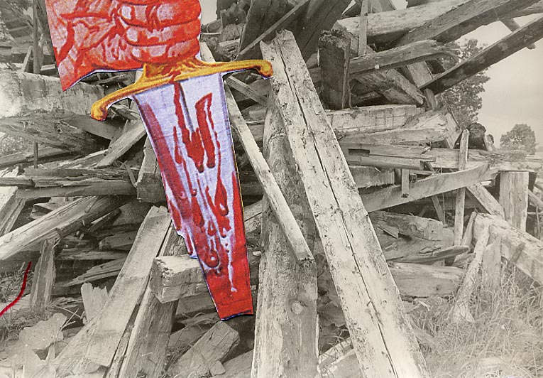 alter Treue. Dach, Türen, Fenster geschlossen. Abgebrannt innen, von denen, die da gewaltsam eindrangen. Es weghaben wollen, wenn es schon mit den offenen Türen, Fenstern und Dachlöchern sowie mit nach innen gebogenen