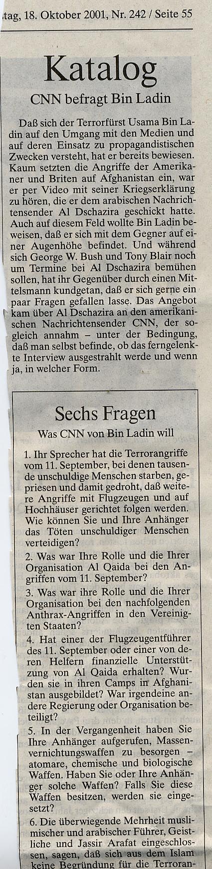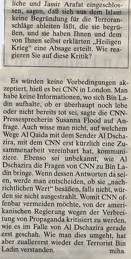 nicht bereit ist zu zensieren, Gefahren zu eliminieren oder, wie die unseren,alle, sagen "Propagandawirkungen" zu verhindern. Man müsse den Feind doch kennen, wenn man ihn bekriegt, besiegen will und wissen warum.