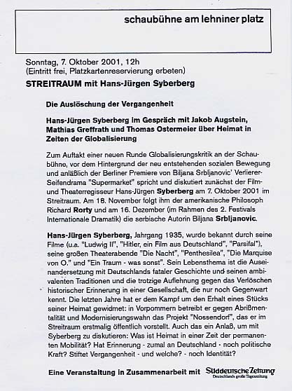Einladung Schaubühne in Berlin, Oktober, reden über Heimat. (siehe) Als sie