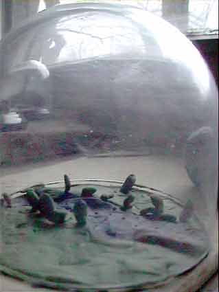 Erste An-Näherungen. Noch ohne den Schnee. Unter der Glocke in der Hand nun, die bergende, im Spiel wiederherstellende. Nur so möglich, was heute durch Entwässerung und Gestäuch zugewachsen, noch zu beschwören ist. Schnee auf sommerlichem Grün, wie nie gewesen. Bald auch das.