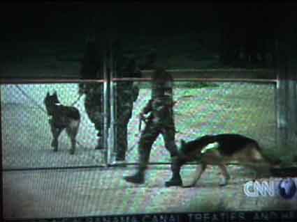 Gefesselte, wie wilde Tiere abgeschleppt, Rüden bewachen die Zäune,