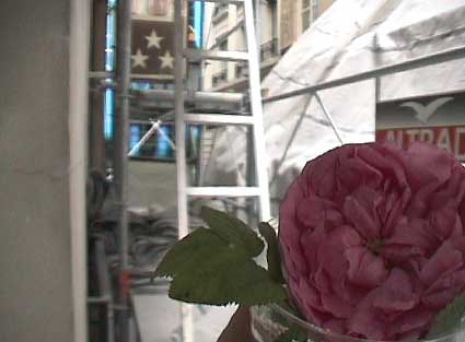 der morgendliche Blick aus dem Fenster, aber die Rose ist aus München