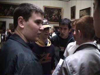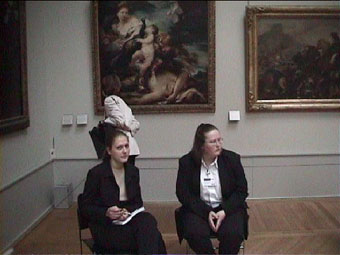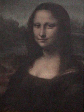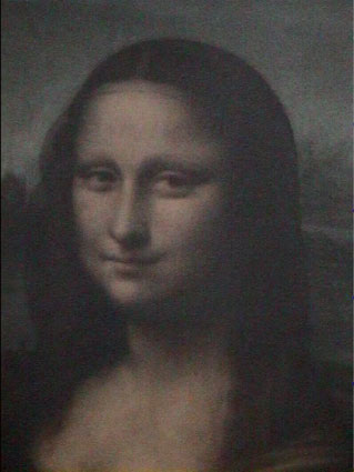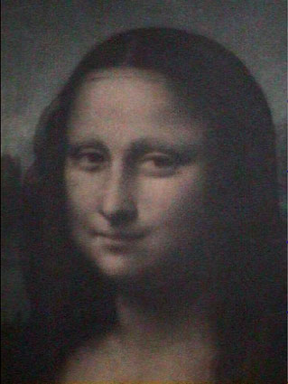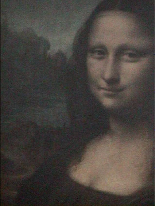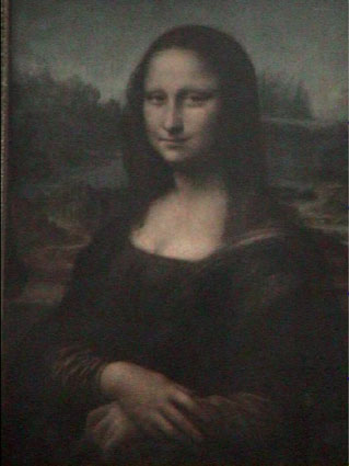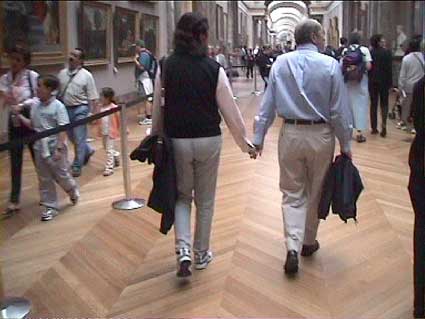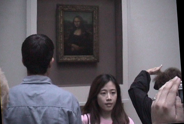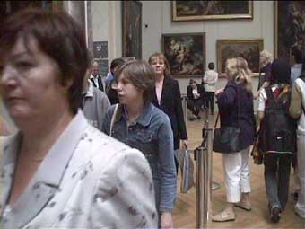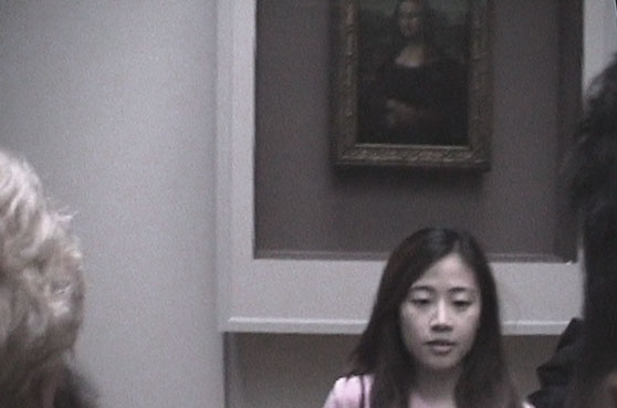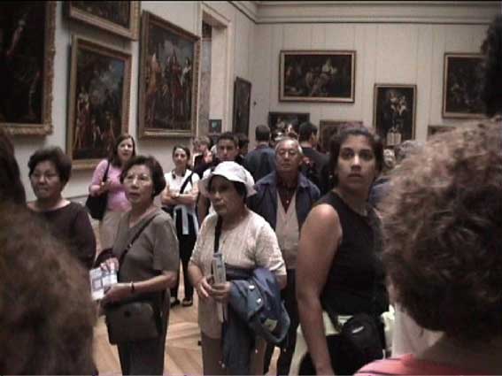 dem Louvre, vor der M.L. in ihrem Raum, mit der Technik des neuen blue tooth