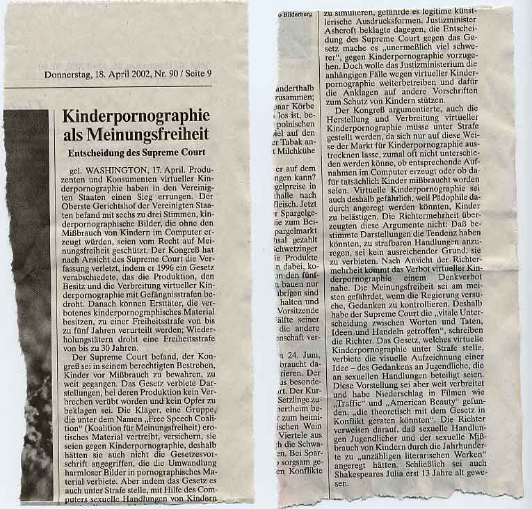 im Internet schreiben, also auch über Kinderpornos. Ich habe einfach