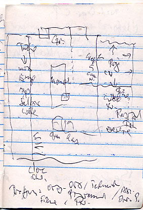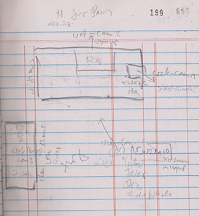 durch das Haus in jetzigem Zustand seiner Topographie mit zugemauerten Fenstern