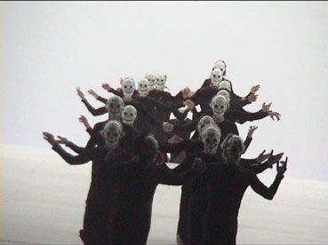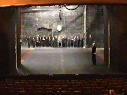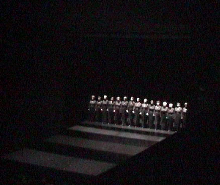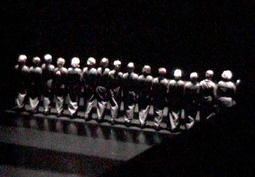 countdown Einar Schleef Daneben, (2/3) links und rechts im Raum an den Seitenwänden, die letzten Chor-Proben zu Macht nichts (Schubert,der Mond ist aufgegangen, Carmen und