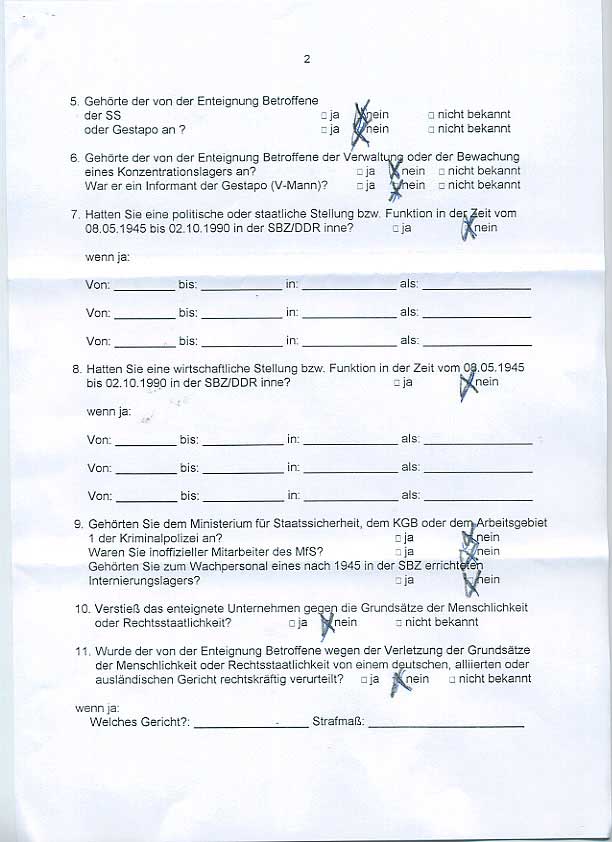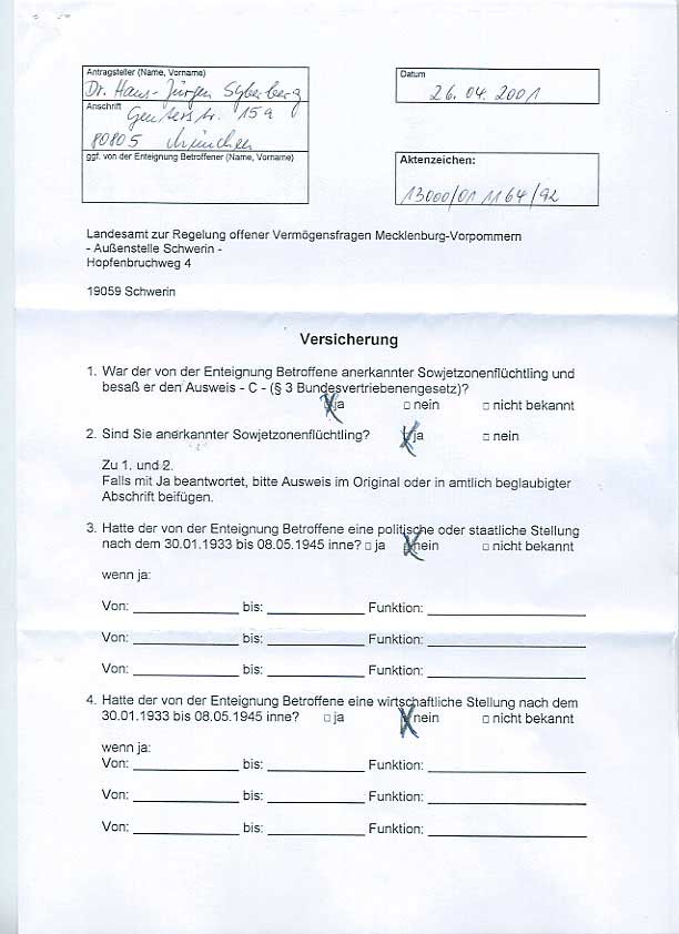 gerade noch in der Zwischenphase selbst geschafft. Den einzigen Schlüssel zur behelfsmäßig sichernden Resttür beim Erben des Enteigneten von 45. Der 's nur kaufen will, zurückerwerben und etwas tun. Es geht um 3 Ha. Restgut