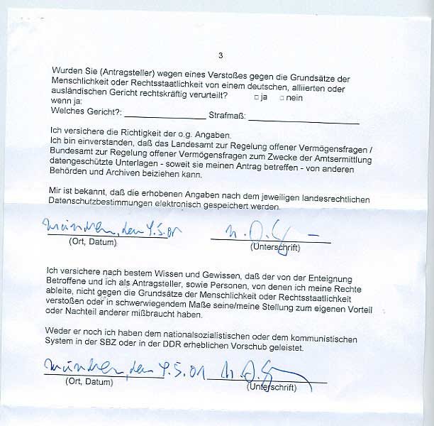 Jetzt geht es wieder los. Keine Antwort. Das sich Schleichen, Ducken, Vertrauensverluste auf allen Seiten. Groteske Situation. Ausgerechnet die Bügermeisterin als Mutter dessen, der ohne Rechte am Land verkauft, verweist auf das Eigentumsrecht im Grundgesetz, dessen, der eben noch abreißt, mit dem Geld der anderen, auf dem Grund des Anderen. Gewinne sich teilend aus fermder Beute, verkeilt in Verteilungskämpfe unter sich, den Nutznießern von 1946/90.