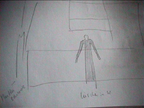 countdown Einar Schleef Über dem Bett (10) projiziert Fragmente zu dem letzten Projekt (Nietzsche Trilogie in Wien 2001). |