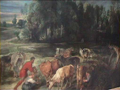 Rubens der Gott der Landschaftsmaler. Zwei von diesen Arkadien menschlichen Geistes hängen in München. Leider in kleinen Kabinetten, eng gequetscht unter Glas und spiegelnden Fenster gegenüber.