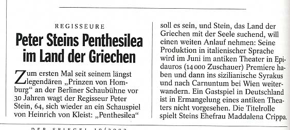 und Steins Homburg als "Traum" des Botho Strauss. Nur ein Auftritt