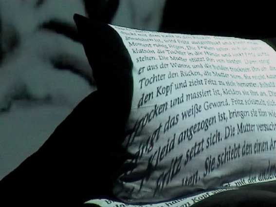Dieser ECCE HOMO. Nun zusammen mit dem anderen Nietzsche des letzten Zusammenbruchs in Wien aus den Skizzen des Textes und Erkundungen zusammengebracht, führt auch Richard Wagner mit Parsifal und den Chören des letzten Liebesmahlels frühester Zeiten Wagners mit dem späten Nietzsche/Schleef zusammen auf ganz andere Spuen. Auf das Bett projiziert.