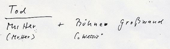 Die Mutter aber im Kern des Gehäuses unten, umstellt von den Gesängen des Sterbenden, ist längst übhöht durch Schrei aus Wut ("Hass" im Dies irae aus den Totentänzen seines letzten Auftritts) und unendlicher Wehmut dessen, was nicht mehr ging und doch gewagt war und so als Wagnis über uns kommt. Geheimnis und letzte Intimität des Herzens als Figur anvertraut.